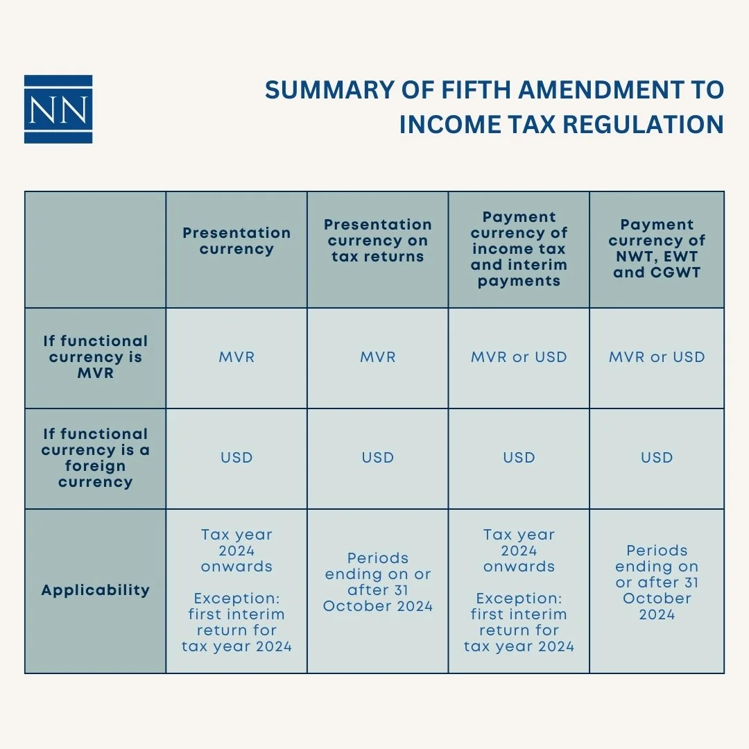 A summary of the Fifth Amendment to the Income Tax Regulation (Regulation No. 2024/R-84) published by Maldives Inland Revenue Authority (MIRA).
